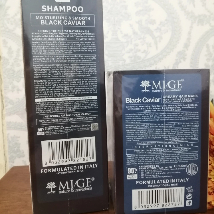شامپو و ماسک بدون سولفات خاویار سیاه میگ mige black caviar