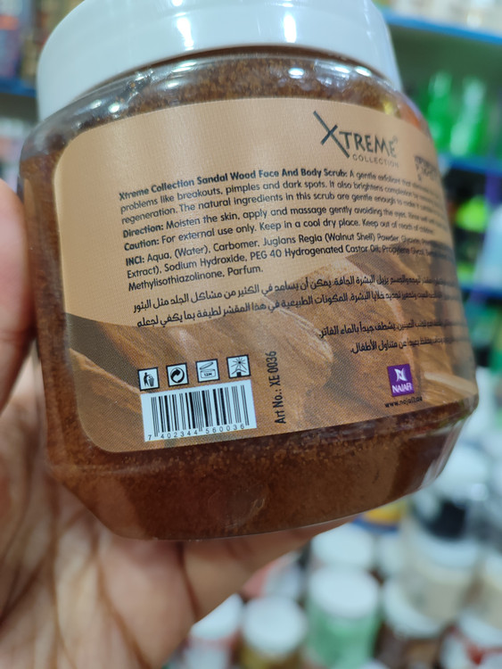 اسکراب صورت و بدن عصاره چوب صندل اکستریم xterme collection sandal wood face and body scrub دارای فرمولی ملایم و موثر که به عنوان پاک کننده صورت و بدن استفاده میشود حاوی عصاره چوب صندل برای از بین بردن آثار سلول های مرده پوست و باز شدن منافذ مسدود پوست مناسب است