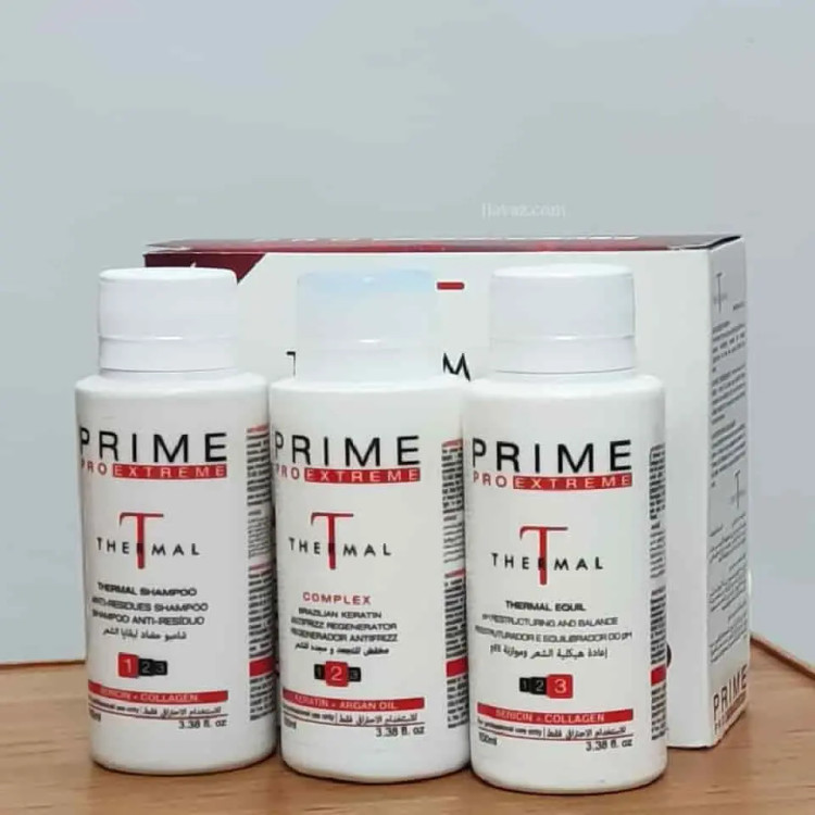 کراتین پرایم درمال خانگی Prime thermal صافی بالا 90% ، احیای بالای 95% پک 100 میل مناسب مصرف خانگی مناسب موهای دکلره شده و رنگ شده ی روشن مناسب موهای کشسان و آسیب دیده با براقیت و شاین بالا نکات محافظتی بعد از کراتین : از شامپو بدون سولفات استفاده کنید. هفته ای یک بار از ماسک داخل حمام بدون سولفات استفاده کنید. بعد از حمام از اسپری قبل از سشوار مخصوص موی کراتین شده استفاده کنید. هفته ای یک بار سعی کنید از روغن آرگان استفاده کنید. تا ۳ روز بعد از کراتین از کش ،تل و کلیپس استفاده نکنید. یک بالشت ساتن یا ابریشم تهیه کنید. تا ۳ روز در آب دریا یا استخر شنا نکنید