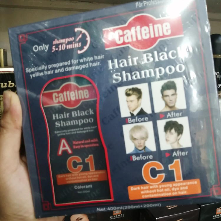 شامپو رنگ گیاهی کافئین C1 کریستال پک دوقلو شامپو رنگ کافئین C1 محصولی است که به ادعای تولید کننده با رفع سفیدی مو با استفاده از عصاره های گیاهانی از قبیل ریشه جینسینگ، Red Linderae، گانودرما لوسیدام، Gingko، Angelica، Fleeceflower Root در ترکیبات خود شما را 15 سال جوانتر جلوه میدهد! این محصول با کیفیت و تکنولوژی آلمانی و تحت لیسانس کشور انگلستان تولید و فرموله شده است. در واقع این شامپو رنگ ترکیبی از بکارگیری فناوری های پیشرفته غربی و بکارگیری گیاهان موثر و طب سنتی شرقی و محصولی خلاقانه است. .عملکرد این محصول به گونه ایست که هنگام شستشو موها مواد موثره و مغذی این شامپو را جذب کرده و عناصر فعال گیاهی این شامپو رنگ بتدریج وارد فولیکول موها شده و به عناصر سیاه تبدیل میشود.بدین ترتیب موهای سفید و خاکستری و … مشکی و زیبا می شود. راهنمای استفاده به نسبت مساوی از هر دو بطری شامپوی موجود در باکس میکس کرده و هم زده تا ادغام گردد سپس 10تا15دقیقه بر روی موها بماند و سپس آبکشی شود.پس از آن بهتر است برای شستن موها از شامپوهای مخصوص موهای رنگ شده استفاده شود