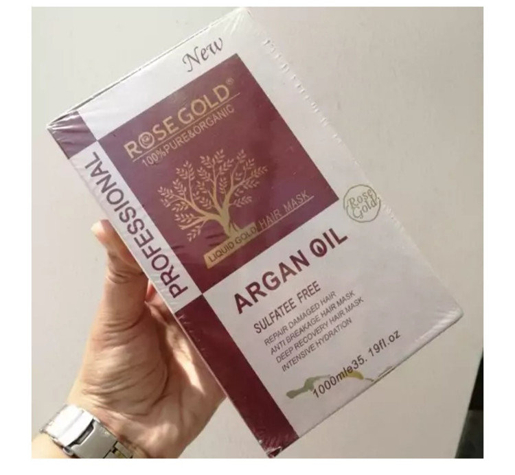 ماسک آرگان رزگلد Rose Gold با حجم 1000 میل ساخت کشور مراکش می باشد. یک مرطوب کننده مقوی و مغذی برای مو های شما است. ماسک رزگلد مناسب برای استفاده در حمام است. حاوی مواد آرگانیکی مثل روغن آرگان و رون بذر کتان است. آسیب هایی که به مو های شما وارد شده است را ترمیم میکند همین طور مو ها را درخشان ، نرم و ابریشمی میکند. خواص آرگان بین پولک های مو نفوذ می کند و مقاومت مو را افزایش می دهد. در رشد مو تاثیر بسزایی دارد. بصورت طبیعی به مو آبرسانی می کند و از وز شدن مو جلوگیری می کند. موهای غیر قابل کنترل(وز و خشن) را نرم و لطیف می کند.ویتامین E آسیبهایی را که به دلیل اتوکشی زیاد،حرارت و اکسیدان کردن مو به مو وارد کرده است را ترمیم می کند. به وسیله قرار دادن پروتئین بین ساختارهای مو ، قابلیت درمان مو خوره های پائین مو را دارد. شوره شر و خارش پوست سر را درمان می کند و نوعی ضد شکنندگی مو محسوب می شود